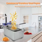 Specifications ・Product type: deep fryer ・Voltage: 110V 50Hz ・Power: 1500W ・Container Capacity: 10L ・Max oil capacity: 6 L ・Temperature Range: 50-200°C ・Product Dimensions: 30x28x45 cm(11.8x11x17.7") ・Basket Size: 18*21*10cm Product Description Commercial-stainless steel, stainless steel construction and heating tube ensure longer life span. The max temperature 200°C, but the deep fryer will produce heat loss in the work, the actual oil temperature is about 150°C Removable oil reservoir makes cleanup a snap and is easier to filter & leftover oil Food basket with carrying handles for ease of cleaning Single tank Comes with stainless steel fryer basket and plastic handles for preventing scald. Cover for preventing the boiling oil from splashing, and exteriors that don't get hot Varying temperature selection dials allows to deep fry your food perfectly. Immersion deep fryer featured with extended heating pipe heat up more quickly Comes with "reset protecting button for overheating". Simply press the reset button the next time you use it. ON/OFF switch and indicator lights to monitor the working procedure Perfect for commercial use, such as used in restaurants, fast food stands or home kitchen, can be used to fry french fries, chicken wings, chicken legs, fish, steak, etc Package Includes 1 X Deep Fryer 1 X Fryer basket 1 X Instruction Note 1. Please keep away from children. Never leave appliance unattended when it is connected to the power outlet. 2. To avoid a sudden power failure, it is recommended that the fryer should be plugged in a wall socket rather than a wiring plate type socket and the plugs are not allowed to plug in the same socket plate. 3. In order to avoid the product be scratched caused by transportation, there will be a protective film on the product. Please removed the protective film before use it. 【High quailty deep fryer】-Made up of food stainless steel, the commercial deep fryer is safe and solid. Distinctive features of this material lie in high impact, excellent corrosion, abrasion and low temperature resistance. 【Adjustable temerature control】-Deep fry at the right temperature with an adjustable thermostat(the temperature range is 50-200°C) for perfect frying results. You can set and enjoy the best flavor according to the food you fried. 【More safety】-The commercial fryer exterior basket with plastic handle lowers food into frying oil with the cover closed to prevent the boiling oil and food from splashing 【Fast heat up & Easy frying】-The commercial deep fryer features a 1500W heating element and an air filter to fry food quickly and to the perfect crisp. Clean oil filtration system for convenient deep frying, cost saving and simple oil storage. 【Wide use】-The freidora eléctrica de aceite is great for cooking French fries, onion rings, egg rolls, fried chicken and any other deep fried food. This fryer is perfect for commercial uses such as restaurants, supermarkets, fast food stands, snack bars or home use.