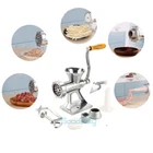 Commercial Meat Grinder Mincer Stuffer Manual Sausage Filler Sauce Maker Machine Description: It has multifunction. It can make Sausage, mince meat , noodles, pepper, vegetables and many other materials you like. Specifications: Material: Aluminum alloy (outer galvanized) Discharging knives and cutters: Iron Color: Silver Machine body Dimension: Height 15cm Width:13.5cm Package includes: 1 x Machine body 1 x Worm 1 x Knife 1 x Plate 1 x Screw ring 2 x Grinding disks 1 x Plastic funnel 1 x Plastic noodles mould 1 x Fixed screw 1 x Handle 1 x Eye screw