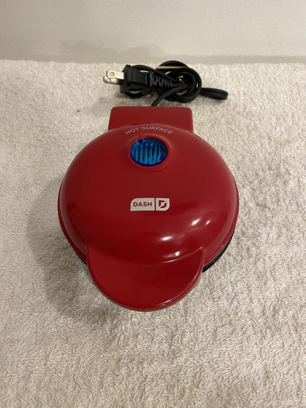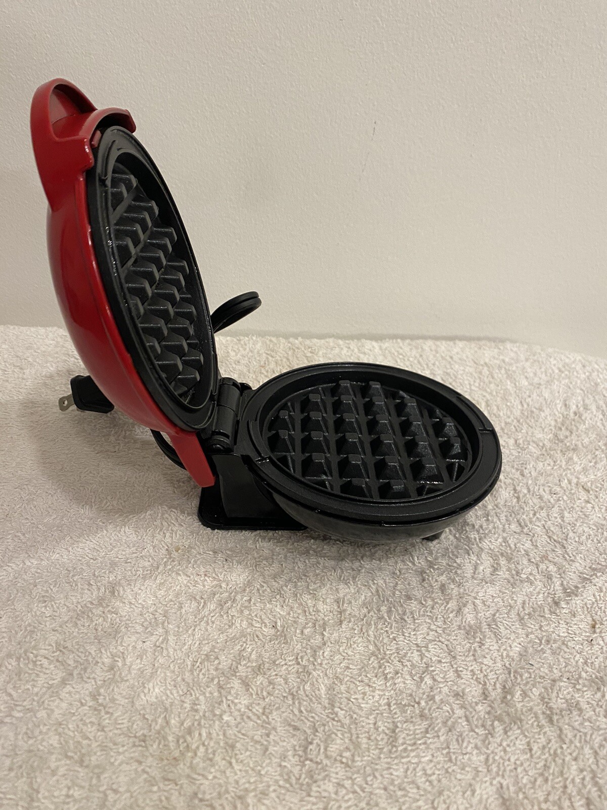Mini waffle maker by Dash! Makes 4 inch waffles! Perfect for kids or nice snacks for brunch! Working, gets extremely hot!!!