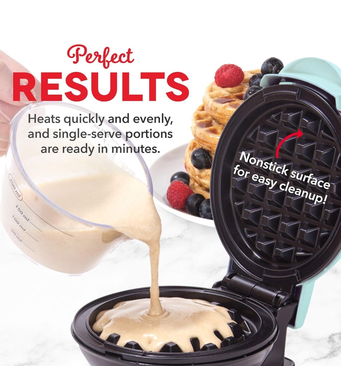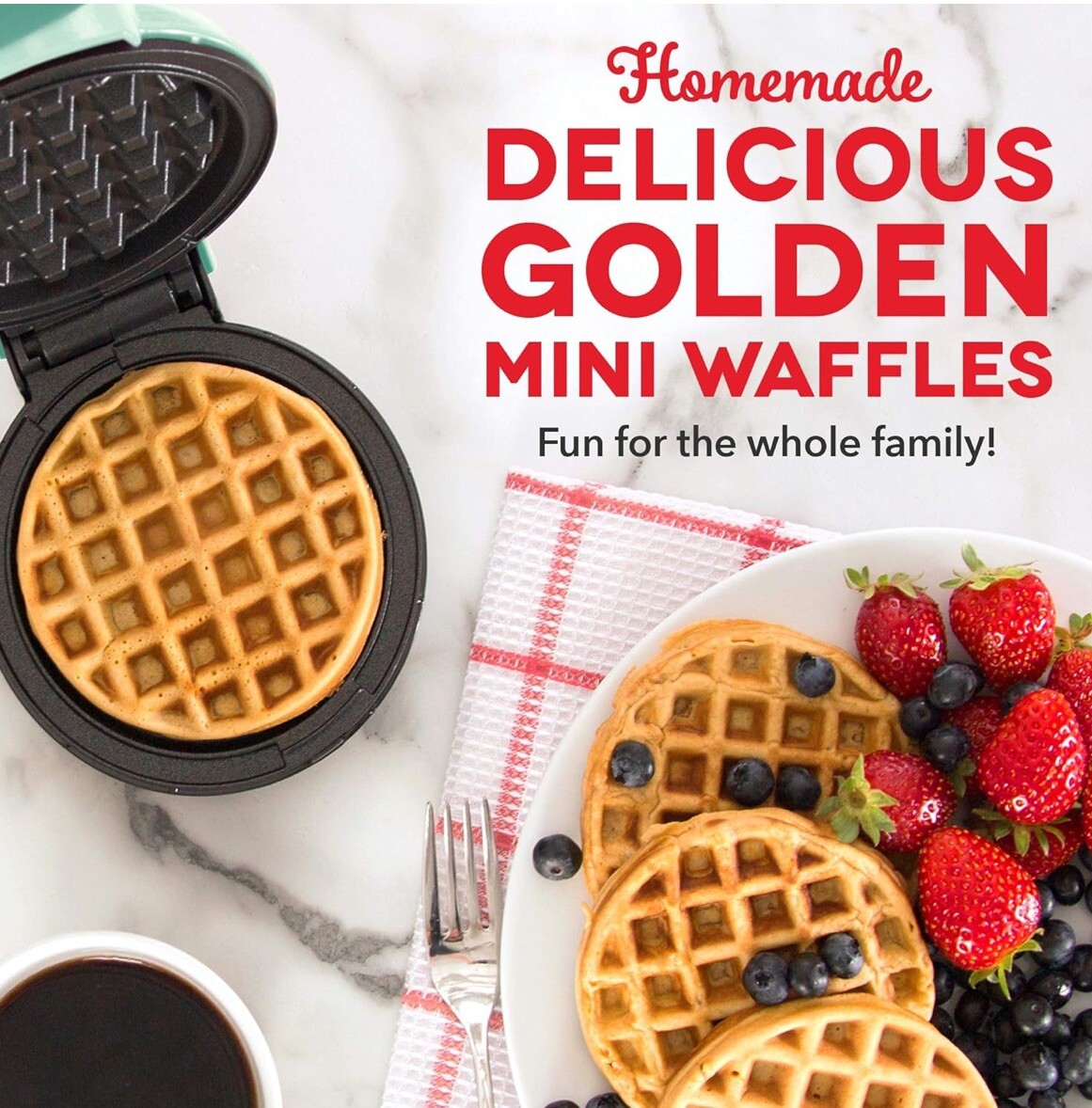 This mini waffle maker by DASH is a must-have for any kitchen. With its non-stick surface and light weight, it's perfect for making delicious waffles without the hassle. The aqua color adds a pop of fun to your kitchen decor and the aluminum material ensures durability. The Dash B076H1Z2WB model is perfect for small kitchens and apartments, with its compact size making it easy to store. Whether you're making waffles for a family gathering or just for a quick snack, this mini waffle maker is the perfect choice.