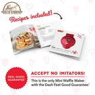 MORE THAN WAFFLES: Make your favorite breakfast classics, or get creative with waffled hash browns, cookies and even biscuit pizzas. Any batter will “waffle” into single serving portions. Great for families or on the go. MINI IS MIGHTY: With a 4” nonstick cooking surface, this is a MUST-HAVE for that first apartment, smaller kitchen, college dorm, or camper/RV and stores easily in a kitchen cabinet or drawer. WAFFLY EASY: Simply plug it in and go; the Waffle Maker heats up in minutes. Dual non-stick surfaces provide an even cook for consistent results and delicious golden waffles every time. Nonstick surfaces make cleanup a snap. PERFECT GIFT: The perfect wedding or new home gift, the Waffle Maker’s small size takes up little counter space, and its sleek design and trendy color options will match any kitchen décor (add to your registry now.) INCLUDES: The DASH Mini Waffle Maker includes one Mini Waffle Maker and Recipe Guide so you can get cooking right away Craving blueberry waffles or potato pancakes? With the DASH mini waffle maker, you can make single serve dishes in less than three minutes. The nonstick surface allows you to perfectly cook and Brown whatever is it you make, and is a fun activity for both adults and kids! Unprocessed your food with the recipe book that is included with purchase, and gain access to our database of thousands of recipes for free!