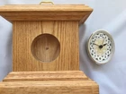 Up for sale is this nice little mantle/bracket clock made from solid oak. The color is light and the protective finish is satin. The battery operated quartz movement is very accurate. It takes an "N" sized battery, 1.5v Duracell model LR1 - sold online as "medical" device batteries and cost about $2 each - the one I have in this clock is pretty fresh and should last quite a while longer. I AM including the battery. The base is stamped by the man who made the clock in 2011: Richard W. Clark. It sits on 4 felt feet and measures about 7-1/2" tall, 7-1/2" wide and 3-1/4" deep. There are no scratches. The only flaw is that Mr. Clark cut the front trim molding piece a bit too long which left a slight gap along the right side of the trim around the vertical column (see last 2 photos). I'm not a dealer, just someone who buys interesting pieces wherever I find them and tries to earn a modest living here on eBay. Thanks for looking and please email me with questions or requests for additional photos. The Fine Print Combined Shipping : I always combine orders going to the same address (unless you tell me not to). Please let me know if you are planning on buying more than 1 item as I typically ship within 1 business day. Free Local Pickup : If you live in or near the central NY (Syracuse) area or are traveling through, and would like to pick your item up in person, just let me know. Returns : If you are unhappy with your purchase, I offer 30 day returns on 99% of my items. I just ask that you use the same packing materials I used to send the item back to me and that you properly insure it.