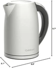 Cuisinart 1.7-Liter Stainless Steel Cordless Electric Kettle with 6 Preset Temperatures 1500 watts for fast heat-up and 1.7-liter capacity 6 preset heat settings (160°F for delicate teas, 175°F for green tea, 185°F for white tea, 190°F for oolong tea, 200°F for French press coffee, and Boil for black tea or instant foods) One-touch controls with blue LED indicators, 30-minute Keep Warm option, and 2-minute memory feature 360° swivel power base for cordless convenience, concealed heating element, and boil-dry protection with auto shutoff On Dec 26, 2024 at 22:47:07 PST, seller added the following information: