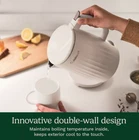 Highlights 1-Liter Double Wall Electric Kettle remains cool to the touch Stainless steel interior construction ensures water stays at the ideal temperature and never encounters plastic Easy to use one touch operation Quick boil brings water to boil in minutes Integrated cord storage in the base Auto-shutoff with overheat and boil dry protection Small footprint streamlined to save space Quick and Convenient Make your morning routines perfect with the Cuisinart Soho 1-Liter Double-Wall Electric Kettle. This kettle is designed to bring water to a boil in minutes, making it perfect for a quick cup of tea, hot cocoa, or instant oatmeal. A simple touch of a button heats up the kettle fast, ensuring less waiting and more enjoying. Safe and Efficient Design Featuring a double-walled, stainless-steel interior, this electric kettle ensures that water boils without ever making contact with plastic. This design not only enhances the safety of the kettle but also keeps the exterior cool to the touch. This makes it safe to handle, even when the water inside is boiling hot. Compact and Stylish The Cuisinart Soho Electric Kettle is not just about performance, it also boasts a sleek and stylish design that complements any kitchen countertop. Despite its small size, it offers big convenience. The innovative compact design includes an area inside the base for easy cord storage, making it a neat and tidy addition to your kitchen appliances. Simplicity at its Best With the Cuisinart Soho Electric Kettle, morning rituals are made simple and minimal—nothing more, nothing less. Experience the convenience and efficiency of this exceptional kettle that embodies the essence of Cuisinart Soho.