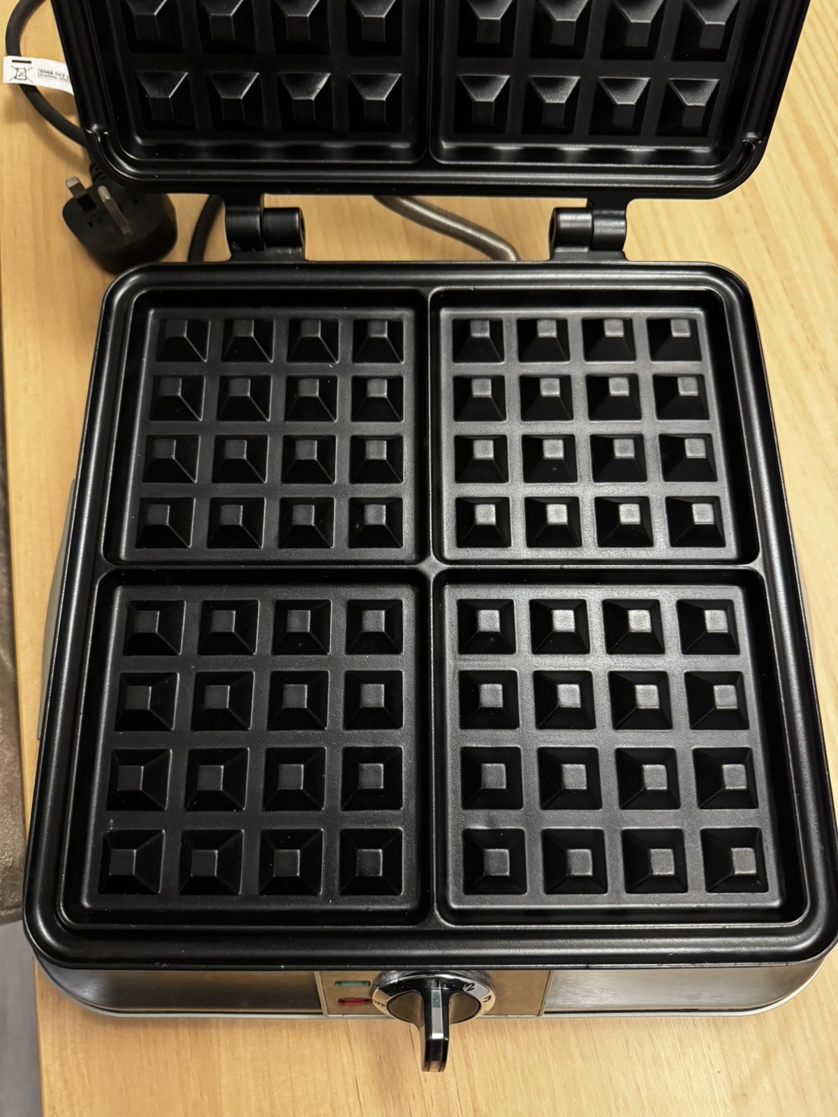 The Cuisinart Waffle Maker WAF-4B is a versatile appliance that makes delicious waffles with its four griddle pans. This silver-coloured grill and griddle pan is from the reputable brand Cuisinart, known for its quality kitchen appliances. With its compact design and easy-to-clean surface, this waffle maker is perfect for those who enjoy making homemade waffles for breakfast or as a snack. Upgrade your kitchen with this reliable and efficient appliance that has only been used a few times, making it a great value for any home chef.