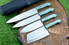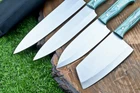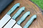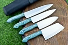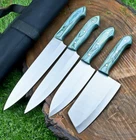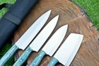 EXCLUSIVE HANDCRAFTED D2 STEEL CHEF KNFIE SET, CHEF KNIVES, KITCHEN KNIVES SET, 4 PCS SET, CAMPING KNIFE, CAMPING KNIFE EDC, Product Details: Overall Knives Length: Approximately 13", 11", 10", 9" inches Blade Length: 8", 7", 6", 5" Blade Material: Genuine D2 Steel Blade Hardness: 54-58 HRC Size Verification: To help you easily determine the size, we've included images with a scale for precise dimension reference. Thank you for your understanding. We appreciate your consideration. Included Accessories: High-quality synthetic fabric (nylon) roll bag with reinforced stitching for durability Handle Material: Wood scales fastened with brass pins. For International Customers: We kindly advise our international customers to familiarize themselves with their country's regulations prior to making a purchase. If customs in your region request customs duties, please be prepared to cover these costs. Regrettably, we cannot assume responsibility, nor issue refunds in such cases. AGE LIMITATION: Please note that we exclusively sell knives to individuals who are 18 years of age or older. Additional Details: Leather Sheath (if pictured): Rest assured, this item comes with a superior-quality, sheath. Crafted with meticulous hand-tooling and stitching, it exemplifies fine craftsmanship and is designed for exceptional durability. The added stitching ensures it withstands years of demanding use, providing reliable protection for your knife throughout its lifetime. Care and Maintenance: When necessary, use a Diamond Wet Stone or a superior sharpening tool to maintain a 20-degree blade edge. After use, clean the item with soap and water, ensure thorough drying, coat it with gun oil, and store it separately from the sheath. Leather absorbs moisture from the air and can lead to blade rust if stored improperly. Customer Feedback: Your satisfaction and feedback are of utmost importance to us. We genuinely appreciate your positive reviews! When assessing shipping time, please consider international transit. Your recognition bolsters our confidence to enhance our services. If you encounter any issues with your order or product dissatisfaction, please reach out to us first. We are committed to resolving any concerns to your satisfaction and kindly request you not to leave neutral or negative feedback. Payments & Returns: All accepted eBay payment methods are available for this purchase. Our return policy typically extends to 14 days. Shipping and Handling: We offer free shipping on all our products (In the USA) Tracking Info: The buyer will receive the tracking number via email (if available). You can also track the shipment in the "Order Details" section on eBay. USPS UPS DHL updates tracking information nightly (if available). Contact: Feel free to contact us anytime via eBay messages. We are dedicated to responding to your inquiries within 24 hours and providing the best possible assistance.