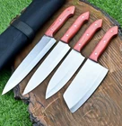 Blade Edge: Straight Food Compatibility: Cheese, Fruit, Meat, Salad, Universal, Vegetables Material: J2 STEEL Number of Items in Set: 4 Type: Chef's Knife Set Includes: Carving & Slicing Knives, Chef's Knife, Cleaver, Santoku Knife, Utility Knife Brand: Handmade Handle Material: wood Country/Region of Manufacture: United States