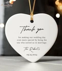 Custom Thank You Ornament for Officiant, Custom Wedding Officiant Gift, Thank You Gift, Pastor Gift, Wedding Gift For Officiant Ornament If you need to buy more, please inbox us We have two material options (Ceramic & MDF), please read the product description as below to choose your favorite options. MDF Ornaments 1-sided design. Print type: Sublimation printing. Crafted from durable MDF with a high-gloss plastic finish so your designs last a lifetime. Shapes: Round, star, heart and oval . Product Dimensions: Circle & Heart, 2.75” tall; Oval & Star, 3.25” tall. Ships with a festive gold cord for easy hanging. CERAMIC Ornaments 125" (3mm), 2.75" height (circle), thick high-quality porcelain One-sided print Hole for the hanging string Gold-toned string included Available in 4 shapes - Snowflake, Star, Heart and Circle The height of the hole can slightly deviate Shipping, Return and Refund Policy On average, merchandise is produced and shipped from our facility 2-4 business days after purchase. Standard Shipping: 5-7 working days for USA. Please contact us if you have any dissatisfaction with the item you buy so that we give you the solution. It is easier for us to handle your issue if you send us the proof like an image. We can replace another within 30 days without fee if the item is defective, damaged, or an error is made on our end.