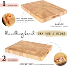 ✅EXTRA LARGE AND THICK FOR ALL CUTTING NEEDS: The cutting board measures 17x13x1.5 inches. It is big, thick, sturdy with End Grain Wood. Could be used as cutting, chopping, carving board, heavy duty butcher block or serving tray. With proper care, this cutting board will outlast most items in your kitchen. ✅FRIENDLY SURFACE, NATURAL WOOD : Our cutting boards are made from 100% natural wood. Wood is a natural product, containing natural deviations in its appearance. Each and every cutting board is beautifully unique with natural color and pattern. ✅SMART DESIGN, MULTIPURPOSE: Front side with new design expertly carved juice groove around one edge to catch runaway liquids. Backside with compartment make for dicing and prepping to put temporarily diced veggies, mashed garlic… on This side can use as a serving tray with bread, crackers sliced baguettes. The inner side handles also make it easy to grab and move the board. On Sep 2, 2024 at 03:37:22 PDT, seller added the following information: