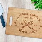 Material: wood, maple Dimension: 9 ¾” x 13 ¾ ” Our personalized cutting board makes the perfect gift for a wedding, anniversary, Mother’s Day gift, Chef's gift or house-warming gift. All of our boards are engraved on one side so that it can be displayed, this allows the other side to be used without damaging the engraved side. At Sam + Zoey, we take pride in the details and love we pour into everything we make. We are not like other shops who cut and paste your design. We confer with you on your design to make sure it is exactly what you want on your board . We know you’ll find something lovely for yourself or to give as a gift to someone special!