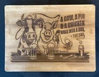 Cutting Board made of Bamboo Wood with Funny Novelty Cow, Pig & Chicken Walk into a BBQ "The End" 15" X 11" ~Please Visit my eBay Store to see Other Listings~ ~Thank you, Ms Mary~