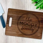 Material: wood, maple Dimension: 9 ¾” x 13 ¾ ” Our personalized cutting board makes the perfect gift for a wedding, anniversary, Mother’s Day gift, Chef's gift or house-warming gift. All of our boards are engraved on one side so that it can be displayed, this allows the other side to be used without damaging the engraved side. At Sam + Zoey, we take pride in the details and love we pour into everything we make. We are not like other shops who cut and paste your design. We confer with you on your design to make sure it is exactly what you want on your board . We know you’ll find something lovely for yourself or to give as a gift to someone special!