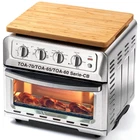 BAMBOO CUTTING BOARD compatible with air fryer oven TOA-70 / TOA-65 / TOA-60 series. Sits steadily on the oven, protects cabinets, countertop, oven surface from getting damaged; protects family and pets from getting hurt. RECLAIM COUNTER SPACE: creates extra space over oven, store on it oven accessories such as mitts, liners, etc. NO FLAMMABLE OBJETS to be stored on the board. When using the oven for long time, it's suggested to remove the cutting board from the oven. HEAT RESISTANT ANTI-SLIP FEET: 4 silicone feet raise the cutting board 0.4" off the oven, create an airflow channel to avoid heat accumulated; also keeps the board steady, no sliding. DURABLE CUTTING BOARD AND SERVING TRAY: a solid cutting board, also a serving tray with side handles for easy grip to serve fresh cookies, etc. to the table. WONDERFUL GIFT for family and friends. The dimension enclosed by 4 silicone feet is 12.8 * 9.7", please measure your oven surface and make sure all 4 feet could sit on it.