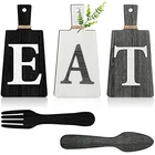 Return Policy Fast Delivery Trusted seller Cutting Board Eat Sign Set Hanging Art Kitchen Eat Sign Fork and Spoon Wall Decor Rustic Primitive Country Farmhouse Kitchen Decor for Kitchen and Home Decoration (Black, White, Gray) Product Description Delicate Design: welcome family and friends into your kitchen or dining space with our charming wooden eat sign; Each letter is displayed on its own individual sign that's been creatively designed in the shape of a kitchen cutting board Product Dimension: each cutting board of this wooden eat sign measures 11 x 5.51 inches/ 28 cm x 14 cm, fork and spoon wall decor, 11.81 x 2.36 inches/ 30 cm x 6 cm, proper measurement coordinating with your house's other decorations Wide Usage: these eat signs and forks sets can adorn your living room, kitchen, dining room, hotel, restaurant, and more, bringing these places warm and sweet atmosp, you can also share them with your friends, neighbors and so on Kitchen Ornaments: this eat sign, fork spoon and knife set would look delicate in your kitchen or dining room; They have a vintage worn look, they would also be a nice addition to your restaurant or coffee shop; They look nice either in a grouping, or you can spread them out to different walls; Each piece can be hung horizontally or vertically Simple to Use: each sign has a pre installed hanging hook on the back and can be hung individually; You can arrange the letters vertically or horizontally to fit your kitchen or dining room's wall space Shipping Returns Payment Shipping Shipping is FREE to all addresses other than APO/PO boxes in the lower 48 states. All our stock ships from US-based warehouses. Shipped via USPS or UPS (depending on location and package weight) Unless stated otherwise, all orders will ship within 24-72 hours of your payment being processed. Check our feedback to see the great reviews of FAST shipping we offer. Returns Seller does not accept returns Payment We currently accept payment via eBay managed payments only. Once payment is cleared, we will dispatch your shipment within 1-3 business days. Please refer to the "Shipping" tab for more information regarding shipping speed to your destination.