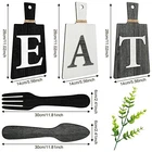 30 Days Return Policy Fast Delivery Trusted seller Cutting Board Eat Sign Set Hanging Art Kitchen Eat Sign Fork and Spoon Wall Decor Rustic Primitive Country Farmhouse Kitchen Decor for Kitchen and Home Decoration (Black, White, Gray) Product Description Delicate Design: welcome family and friends into your kitchen or dining space with our charming wooden eat sign; Each letter is displayed on its own individual sign that's been creatively designed in the shape of a kitchen cutting board Product Dimension: each cutting board of this wooden eat sign measures 11 x 5.51 inches/ 28 cm x 14 cm, fork and spoon wall decor, 11.81 x 2.36 inches/ 30 cm x 6 cm, proper measurement coordinating with your house's other decorations Wide Usage: these eat signs and forks sets can adorn your living room, kitchen, dining room, hotel, restaurant, and more, bringing these places warm and sweet atmosp, you can also share them with your friends, neighbors and so on Kitchen Ornaments: this eat sign, fork spoon and knife set would look delicate in your kitchen or dining room; They have a vintage worn look, they would also be a nice addition to your restaurant or coffee shop; They look nice either in a grouping, or you can spread them out to different walls; Each piece can be hung horizontally or vertically Simple to Use: each sign has a pre installed hanging hook on the back and can be hung individually; You can arrange the letters vertically or horizontally to fit your kitchen or dining room's wall space Shipping Returns Payment Shipping Shipping is FREE to all addresses other than APO/PO boxes in the lower 48 states. All our stock ships from US-based warehouses. Shipped via USPS or UPS (depending on location and package weight) Unless stated otherwise, all orders will ship within 24-72 hours of your payment being processed. Check our feedback to see the great reviews of FAST shipping we offer. Returns As our valued customer, we will do our best to make sure the product you receive arrives to you on time and as expected. If you are not satisfied with your purchase, please contact us within 30 days of receiving your order to process a return. Payment We currently accept payment via eBay managed payments only. Once payment is cleared, we will dispatch your shipment within 1-3 business days. Please refer to the "Shipping" tab for more information regarding shipping speed to your destination.