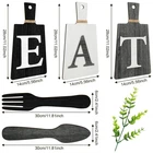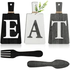 Cutting Board Eat Sign Set Hanging Art Kitchen Eat Sign Fork and Spoon Wall6689 Delicate Design: welcome family and friends into your kitchen or dining space with our charming wooden eat sign; Each letter is displayed on its own individual sign that's been creatively designed in the shape of a kitchen cutting board Product Dimension: each cutting board of this wooden eat sign measures 11 x 5.51 inches/ 28 cm x 14 cm, fork and spoon wall decor, 11.81 x 2.36 inches/ 30 cm x 6 cm, proper measurement coordinating with your house's other decorations Wide Usage: these eat signs and forks sets can adorn your living room, kitchen, dining room, hotel, restaurant, and more, bringing these places warm and sweet atmosphere, you can also share them with your friends, neighbors and so on Kitchen Ornaments: this eat sign, fork spoon and knife set would look delicate in your kitchen or dining room; They have a vintage worn look, they would also be a nice addition to your restaurant or coffee shop; They look nice either in a grouping, or you can spread them out to different walls; Each piece can be hung horizontally or vertically Simple to Use: each sign has a pre installed hanging hook on the back and can be hung individually; You can arrange the letters vertically or horizontally to fit your kitchen or dining room's wall space type: B Colour:As Shown Material:wooden Package Contents: 3 x cutting board 1 x fork 1 x spoon