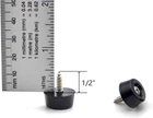 Size: 5/16" Tall x 11/16" Top Width x 5/8" Bottom Width, Center hole 5/32" (fits #8 screws). Screw-on rubber feet for cutting board, chopping board, cheese board. Perfect size. Also compatible with some small furniture, electronic equipment and other applications. Rubber feet material: High quality thermal plastic rubber, RoHS compliant. Anti-skid, non scratching floor and countertop. Built-in a stainless steel washer for each rubber feet for extra strength. Qty: 12 Pcs of rubber feet and 12 Psc of stainless steel screws(#8 x 5/8"). Product Description Package Includes: 12 x round rubber feet (11/16" W x 5/16" H ) 12 x stainless steel screws (#8 x 5/8" ) Medium Size Rubber Feet for Cutting Board. It's the Perfect Size of Cutting Board Feet, Neither Too Small Nor Too Big. These black round rubber feet are made of high quality thermoplastic rubber material, corrosion resistance, anti-skid, shock-proof, easy installation. Each rubber foot built-in a 304 stainless steel washer, which can enhance the stability of the rubber bumper feet. Widely used in a variety of applications, like rubber cutting board feet, rubber furniture feet, rubber feet for electronics, wood-craft projects, guitar amp feet, non-slip chair and stool feet, and so on. Base diameter: 5/8 inch Top diameter: 11/16 inch Height: 5/16 inch Hole diameter: 5/32 inch (fits #8 screws)