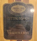 This is a Vermillion wooden cutting board. It is new old stock still in original sealed wrap. The item measures roughly 13"x11". See images for condition and appearance, inspect to your satisfaction, and message us with any questions you may have. We look forward to serving you! Thanks for shopping Hoosierrenewsier! Click the link to see the rest of our Store! HOOSIERRENEWSIER!