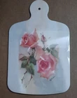 This is a 10" (without handle) x 8.5", plastic, cutting board with a floral design from Artist Jill Kirstein titled Fragrant Blooms". Excellent pre-owned condition, couple of very tiny, minor scratches. SHIPPING IS BASED ON MINIMUM SHIPPING TO EAST COAST. IF YOU LIVE CLOSER AND COST LESS, I WILL REFUND THE DIFFERENCE BACK TO YOU.