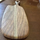 Handmade cutting board about 12" length. Nice board and used very infrequently. This was purchased at an art show. Offers Considered. No returns.
