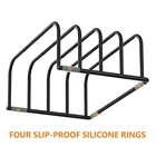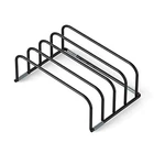 【Compact Design】This cutting board rack is quite compact, only 3 inch in height and 5.3 inch in depth, can be put in any corner in your kitchen. 【Space-Saving】A great space organizer / kitchen essential to storage chopping board rack,keep your cutting board away from any spills. Build up a neat and organized space for your cooktop. Easy to use and provide a cleaner working environment simply. 【Non-Slip】With four silicone rings on the bottom, it will not slip around on the counter and prevents the cutting boards from flipping over in your kitchen. 【Sturdy Structure】This chopping board rack is made of thick metal and well coated and welded, strong enough to hold several thin cutting boards. 【Measure your cutting boards before buying】There are four of 1.0 inch wide slots on this compact rack, can hold up four pieces 1.0 inch thick cutting boards or more of thinner ones.Please note that this storage rack is not suitable for thick kitchen utensils that are thicker than 1.0 inches, such as pots and deep bakewares.