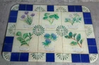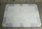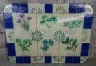 Beautiful Herb Themed Tempered Glass Cutting Board 16" x 12" with rubber foot pads. Gently preowned; good condition. No chips or cracks. Weighs just under 3 lbs. Thanks for looking!