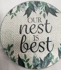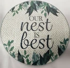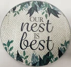 I'm selling a Cutting Board / Trivet,Glass, Round, app 8", OUR NEST IS THE BEST as seen on pictures. Made By Cooking Concepts. Made out of tempered glass - strong, antimicrobial, shatterproof. Rubber feet to protect counter, non-slip. I also have the same design cutting board / trivet in square size (approx 8" x 8") It Could also make a great trivet / hot plate, or cheese serving board. It comes in sealed plastic bag. I also make have matching towels, vinyl placemats, oven mitts, pot holders, stove burners covers etc Please check out my other listings and if you buy multiple items, please contact me and I will find out how I can combine your shipping. I will ship to USA only (or internationally using Global Shipping) as soon as I can go to the post office.