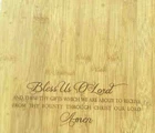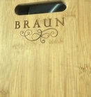 This unique cutting board is the perfect wedding gift or addition to your kitchen. The beautiful laser engraving of the family name"Braun" and a prayer adds a personal touch to this wooden cutting board. The making method of laser engraving ensures a long-lasting design that won't fade or rub off. This cutting board is made in the United States and is a one-of-a-kind addition to any kitchen.