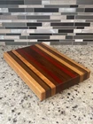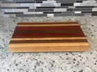 Introducing our Walnut, Cherry, and Padauk Edge Grain Cutting Board—a stunning blend of woods that marries form and function in your kitchen. This cutting board showcases the rich, dark tones of walnut wood, the warm elegance of cherry, and the vibrant reddish accents of padauk, creating a visually captivating and unique piece. Handcrafted with precision in an edge grain pattern, this cutting board is designed for both durability and aesthetics. Its fine finishing and meticulous craftsmanship result in a smooth, inviting surface that's perfect for all your chopping, slicing, and dicing needs. Elevate your culinary space with this exquisite combination of walnut, cherry, and padauk wood. Whether you're a professional chef or a passionate home cook, this cutting board adds both style and substance to your kitchen. It's the perfect choice for those who appreciate the beauty of natural wood and demand the highest quality in their kitchen tools. Experience the art of cooking on our Walnut, Cherry, and Padauk Edge Grain Cutting Board—a masterpiece where elegance meets utility. Measurements: 15.5in x 10in x 1.75in Due to a manual measurement please allow a few millimeters difference. For more beautiful items visit our website www.antisocialcrafts.com