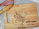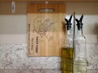100% organically grown bamboo cutting board that won't dull knives. Featuring burned noodle Soup bowl. and inspirational words. A unique tasteful touch to your kitchen! Handmade burned art.