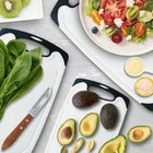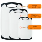 3 Piece Cutting Board Set: Cutting Board for Kitchen offers a variety of sizes to meet all your food preparation needs, from cutting large vegetables and meats to slicing fruits and preparing toppings,Large Cutting Board (15.9 x 9.6),Medium Cutting Board (12.9 x 7.8),Small Cutting Board (9.8 x 5.9),thickness of 0.35 inches。 Dishwasher Safe Cutting Boards:Cutting Board for Kitchen takes the hassle out of cleaning, cleaning these Cutting Boards is a breeze, just rinse them with water or wash them in the dishwasher. Plastic Cutting Board with Handle:Cutting Board for Kitchen is ergonomically designed to provide a firm grip and can be hung on the kitchen wall to save countertop space and provide you with maximum convenience. Non-Slip Cutting Boards: Plastic Cutting Boards are surrounded by non-slip rubber feet that offer shock absorption so there are no loud crackling sounds when cutting, allowing the boards to be easily secured to the countertop, making your cooking tasks more efficient and enjoyable. Scratch Resistant Cutting Board: Plastic Cutting Board is made of BPA-free, high-density plastic, so you don't have to worry about scratching the surface of the board thanks to its sturdy construction and hard-wearing surface, allowing you to use it for a long time. Cutting Board with Groove: The groove around the Plastic Cutting Board prevents spills and keeps the countertop clean.