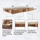BIGGER AND THICKER SIZES: We design two cutting board sizes, Large 24" L, 18" W, 1.5" H, Standard 18" L, 12" W, 1.5" H, which are stable on the countertop when cutting heavy things, such as cutting watermelon or chopping meat. PREMIUM ACACIA WOOD:Our cutting board is made of high-quality acacia wood, which has rich colors with beautiful contrasting patterns and variations from light to dark. Acacia wood also has good anti-corrosion properties and is not easy to mold. JUICE GROOVE & INNER HANDLE DESIGN: Surrounded built-in juice groove is close to the edge to maximize the cutting area while perfectly catch excess liquids without overflow to the countertop, meanwhile the grooves are not too narrow to clean. The inner handle is on the side and does not occupy the cutting area. KITCHEN ESSENTIALS: These acacia wood cutting boards are perfect for everyday food preparation, from slicing fruit to chopping veggies, and are perfect kitchen starter sets or housewarming gifts. HOW TO MAINTAIN: When cared for correctly, with proper cleaning (hand wash only) and oiling, this board will outlast most items in your kitchen. Applying a food-grade mineral oil every 3-4 weeks is essential to ensure that the wood stays hydrated as well as beautiful.