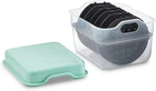 DASH Multimaker Mini System - Waffle Maker with Six 4” Removable Plates & Storage Case: Waffle Iron & Griddle, 4-in-1 Mini Waffle Maker for Kids and Families – Nonstick Surface, Just Add Batter (Aqua) About this item 4-IN-1 MINI HEART WAFFLE MAKER: This DASH Multimaker with Six 4” removable plates serves as a mini heart shaped waffle maker, in addition to classic and sunflower waffles. It also doubles as a small griddle, perfect for eggs, sausages, burgers, and more. EFFICIENT & USER-FRIENDLY: Simply plug it in and add batter. The built-in indicator light on this family waffle maker notifies you when the pan is ready for use in minutes, while the easy-to-use handle and non-slip feet provide for a safe experience. HIGH QUALITY NONSTICK SURFACE: This small waffle maker comes with a superior quality PTFE nonstick surface ensuring your mini waffles come out perfectly every time, while making clean-up a breeze. REMOVABLE PLATES: Easy cleanup is a key feature of this mini waffle iron. The removable plates pop out seamlessly and are dishwasher safe, making this small waffle maker practical for everyday use. This 4-in-1 waffle maker is efficient and easy to maintain. From the manufacturer Removable Plates Cook a full breakfast with Mini Griddle, Classic Waffle, and Heart + Sunflower Waffle Plates all using just one Maker! Snap & Swap 4” Plates swap out quickly and easily for full breakfast in a dash! Nonstick Surfaces Handy Storage Case for collecting Plates included. That’s a Wrap! Advanced nonstick coating for easy food release and cleanup! Dishwasher Safe Once cool, Plates pop out easily and go right into the dishwasher for easy cleanup. Batter Up Preheating Indicator Light alerts when it’s time to start cooking. Beyond Breakfast Make mini magic sunrise to sunset. Included Recipe Guide has inspo for many mini meals. Safety First Non-slip bottom keeps your Mini Maker stable and safe to use.