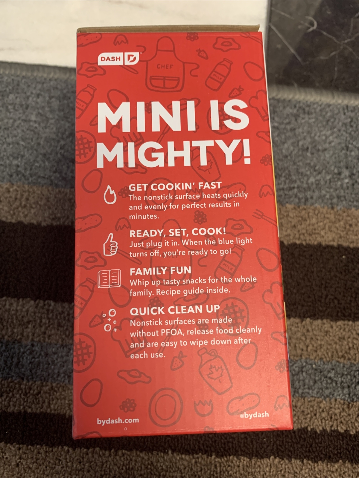 This box is technically “open” but it is brand new nothing has been taken out of the box ever, this is brand new but the box is just not sealed. Introducing the Dash Waffle Maker Mini in Dark Blue, a brand new 4" non-stick kitchen appliance that will make your breakfasts more delightful. With a power output of 350 watts, this mini waffle maker is electrically powered and comes in a beautiful gold manufacturer color with blue accents. It has a capacity of 1 and is made of plastic and metal materials for durability. This waffle maker also features recipes as part of the components included and has a model number of DMW001RD. It is perfect for making crispy and fluffy waffles without the need for any oil or butter. Get creative with your toppings and enjoy a delicious breakfast with this Dash Waffle Maker Mini.