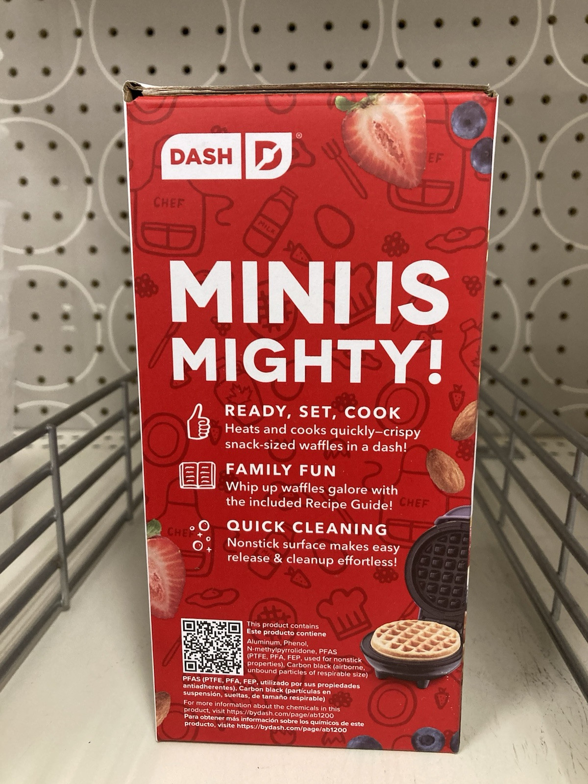 Description Cute & compact, the Dash Mini Maker Waffle makes snack-sized waffles an everyday treat. This appliance is ideal for making individual waffles that go beyond breakfast. Make mini paninis, hash browns, and even biscuit pizzas with the appliance that turns ordinary ingredients into exciting waffle snacks. The Dash Mini Maker Waffle heats up in mere minutes, making it the perfect appliance for a quick snack, or for breakfast on the go. Dual non-stick cooking surfaces clean easily. The mini, compact size is perfect for small apartments, dorm room cooking or taking on the go. Highlights The best-selling Dash Mini Waffle Maker, for easy 4” waffles for any dietary needs. Dual non-stick cooking surfaces heat evenly, and waffles lift cleanly for perfect results. 4” cooking surface heats in minutes. One-step setup, just plug it in and you’re done. Easy clean-up. Waffles can be cooked individually or made in a batch and frozen for later. Compact and lightweight (just over 1lb) 350 Watts Includes: Dash Waffle Mini Maker and Recipe Guide.