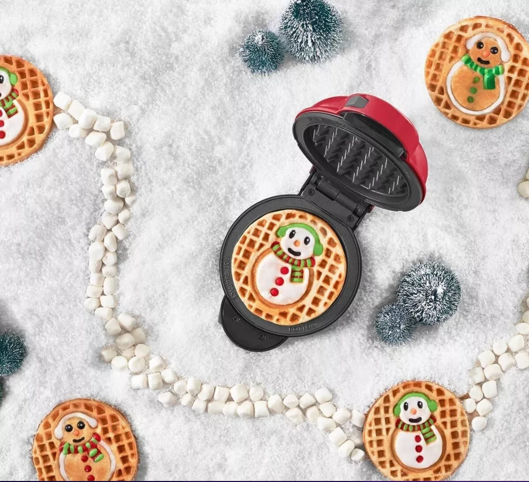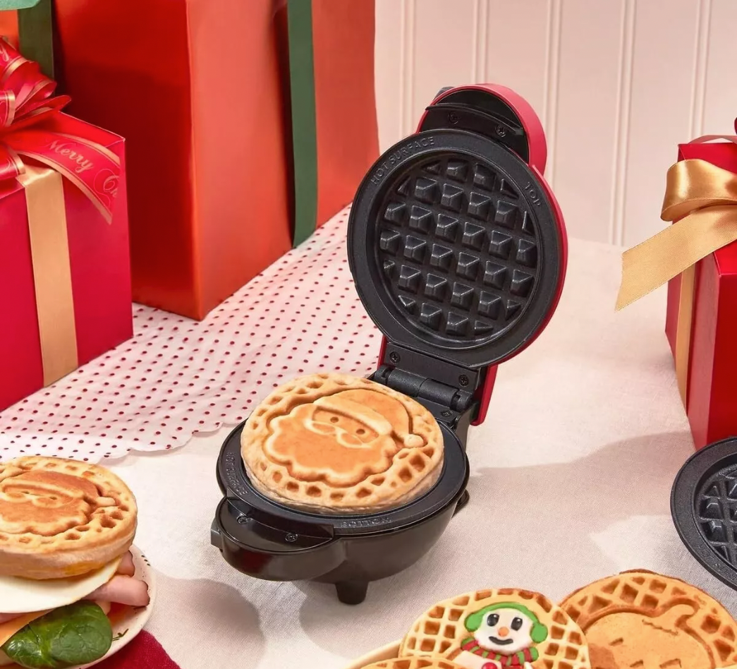 The Dash Mini Waffle Maker System is a red electric waffle maker with removable plates. Perfect for the holidays - The kids will LOVE it! It has a voltage of 120 volts and is made of aluminum and plastic. The model is Dash DIW047GBRD01 and it weighs 4 lbs. The waffle maker comes with a storage case and is brand new.