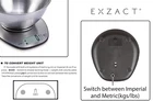 Exzact High Quality Stainless Steel Electronic Kitchen Scale, Product dimension: 19.5 x 17.8 x 3.8 cm. Large LCD display: 5.8 cm x 2.7 cm, with " Zero " or " Tare " function weigh several ingredients without removing the previous contents; Auto off function in 1 minute, Measures weight of dry ingredients and volume indication of liquids (water and milk). Detachable large stainless steel mixing bowl: diameter 21 cm/ height 10 cm, with easy clean stainless steel body. Capacity: 5 kg /11 lb; Weight units: gram/lb; Graduation: 1 gram/0.1 oz, with 2 models of gram and lb to switch between imperial and metric measuring units.. Low battery and overload error indicator. Power supply: 2 X AAA battery (NOT included) Product Description Innovative, Dynamic and Excellent in home, office, sport and leisure products. Exerz offers an wide range of high quality kitchen scales and body scales under the brand of EXZACT for a diverse range of customer needs. With innovative-led design, our products are with high-quality durable materials and finishes as well as colours. Kitchen scales: EXZACT kitchen scales are designed to enable total confidence in the kitchen, ideal for bakery or cooking lovers. We have a wide selection of digital kitchen scale, to help your food preparation with accurate measurements. EXZACT Kitchen Scale Large LCD display: 5.8 cm x 2.7 cm, with " Zero " or " Tare " function weigh several ingredients without removing the previous contents; Auto off function in 1 minute, Measures weight of dry ingredients and volume indication of liquids (water and milk). High Accuracy Capacity: 5 kg /11 lb; Weight units: gram/lb; Graduation: 1 gram/0.1 oz, with 2 models of gram and lb to switch between imperial and metric measuring units. Exerz offers an wide range of high quality kitchen scales and body scales under the brand of EXZACT for a diverse range of customer needs. With innovative-led design, our products are with high-quality durable materials and finishes as well as colours. Package Includes: 1 x EXZACT Digital Kitchen Scale 1 x Stainless Steel Bowl 1 x User's Manual Batteries Not Included Exzact Electronic Kitchen Scale - EX4350 - Premium Large Display Wet and Dry Food Weighing Scale with Stainless Steel Mixing Bowl - 5 Kilogram / 11 Pound 5.8 cm x 2.7 cm large LCD display 2 large buttons Automatically powers-off after 2-minutes Overload indication The minimum weight recommendation is 3g-5g. Kindly note that this scale is not water-resistant. Add to Cart Add to Cart Add to Cart Add to Cart Customer Reviews 4.7 out of 5 stars 3,752 4.6 out of 5 stars 483 4.5 out of 5 stars 675 4.6 out of 5 stars 3,612 4.6 out of 5 stars 1,254 Price $14.50 $ 14 . 50 $13.50 $ 13 . 50 $42.80 $ 42 . 80 — $37.55 $ 37 . 55 Material Bamboo Bamboo Bamboo/procelain Chrome Bamboo Availabe Set 4pcs set & 5 pcs set 4pcs set & 5 pcs set 10pcs set ✓ 4pcs set
