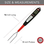 Corpmine Digital Meat Thermometer Fork for Grilling and Barbecue Fast Instant Read TIRED OF MESSING UP YOUR BARBEQUE? When it comes to grilling meat, trying to get it just right is not always easy. You know from experience that using sight and touch to determine the readiness of your meat is never enough. You often end up with a batch that pleases some people but gets complaints from others. Wouldn’t it be nice if you could have a tool that will help you become more consistent with your grilling results? ELIMINATES THE GUESSWORK It’s hard to tell if a piece of meat is ready just by looking at it. Our meat thermometer takes away the guesswork, ensuring you get it perfect every time. It comes with a flashing doneness indicator that lets you know when your steak is ready. THE DIGITAL ADVANTAGE Our digital thermometer takes ease of use to the next level. It provides meat choices and taste settings. Simply choose the setting you prefer and wait for the sound of an alarm to tell you your grilled food is good to go. This meat thermometer also comes with a large lighted screen, making it easy to see the temperature even when it’s dark. AVOID OVERCOOKING Our digital thermometer helps ensure you’re sticking with the right temperature, allowing the meat to stay juicy and tender. To ensure accurate reading, make sure you are sticking the thermometer into the thickest part of the meat. ENJOY DELICIOUS STEAKS With our meat thermometer, you no longer have to go to fancy restaurants to enjoy a delicious steak. You can consistently have your own delicious cuts at home! Our meat thermometer comes with a bonus eBook that will help you master the art of barbecuing. NEVER WASTE GOOD MEAT AGAIN One important advantage of using our digital thermometer is that you’ll never end up with wasted meat again. Messing up your barbecue after you’ve put in all the work can be a real bummer. It’s a waste of effort, time and money as well. Features: DO YOU WANT TO BE A GRILLMASTER? The Grille Perfect thermometer has all the settings you need to ensure perfectly grilled food every time you grill! Five meat types to choose from and four doneness level settings lets you select the perfect settings for each guest at your cookout. DO YOU ONLY NEED THE TEMPERATURE? The Grille Perfect thermometer has a standard setting which allows you to measure temperature without the ready alarm sounding. The standard setting will measure temps from -58 deg. F to 302 deg. F. DO YOU WANT TO BE SAFE WHILE GRILLING? The Grille Perfect thermometer is 16 inches long with an 8 inch long handle that has a slip-resistant coating with a velvet smooth surface. The large round comfortable handle allows for a firm grip when measuring your foods temperature. The overall long length keeps your hand and fingers safe from the heat of your grill. You safety is a priority at Grille Perfect. DO YOU WANT EASY CLEANING? The Grille Perfect thermometer fork tines are made of 304 Stainless Steel. One of the most popular food grade stainless steels used today. It is easily cleaned with soapy water and a dish cloth. The handle should be cleaned with a damp cloth only. Do not submerge the thermometer fully in water at any time. Payment All payments are processed through PayPal and give you; the buyer protection on your purchase. Shipping All items ship out as fast as possible from multiple warehouses around the country. Most items are delivered within 3 business days. Returns We offer simple and easy returns on almost all items within 30 days of delivery. Contact us for a return authorization and address to ship your item to. © Copyright - Corpmine