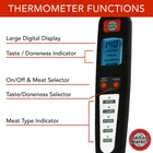 TIRED OF MESSING UP YOUR BARBEQUE? When it comes to grilling meat, trying to get it just right is not always easy. You know from experience that using sight and touch to determine the readiness of your meat is never enough. You often end up with a batch that pleases some people but gets complaints from others. Wouldn’t it be nice if you could have a tool that will help you become more consistent with your grilling results? ELIMINATES THE GUESSWORK It’s hard to tell if a piece of meat is ready just by looking at it. Our meat thermometer takes away the guesswork, ensuring you get it perfect every time. It comes with a flashing doneness indicator that lets you know when your steak is ready. THE DIGITAL ADVANTAGE Our digital thermometer takes ease of use to the next level. It provides meat choices and taste settings. Simply choose the setting you prefer and wait for the sound of an alarm to tell you your grilled food is good to go. This meat thermometer also comes with a large lighted screen, making it easy to see the temperature even when it’s dark. AVOID OVERCOOKING Our digital thermometer helps ensure you’re sticking with the right temperature, allowing the meat to stay juicy and tender. To ensure accurate reading, make sure you are sticking the thermometer into the thickest part of the meat. ENJOY DELICIOUS STEAKS With our meat thermometer, you no longer have to go to fancy restaurants to enjoy a delicious steak. You can consistently have your own delicious cuts at home! Our meat thermometer comes with a bonus eBook that will help you master the art of barbecuing. NEVER WASTE GOOD MEAT AGAIN One important advantage of using our digital thermometer is that you’ll never end up with wasted meat again. Messing up your barbecue after you’ve put in all the work can be a real bummer. It’s a waste of effort, time and money as well. DO YOU WANT TO BE A GRILLMASTER? The thermometer has all the settings you need to ensure perfectly grilled food every time you grill! Five meat types to choose from and four doneness level settings lets you select the perfect settings for each guest at your cookout. DO YOU ONLY NEED THE TEMPERATURE? The thermometer has a standard setting which allows you to measure temperature without the ready alarm sounding. The standard setting will measure temps from -58 deg. F to 302 deg. F. DO YOU WANT TO BE SAFE WHILE GRILLING? The thermometer is 16 inches long with an 8 inch long handle that has a slip-resistant coating with a velvet smooth surface. The large round comfortable handle allows for a firm grip when measuring your foods temperature. The overall long length keeps your hand and fingers safe from the heat of your grill. You safety is a priority at . DO YOU WANT EASY CLEANING? The thermometer fork tines are made of 304 Stainless Steel. One of the most popular food grade stainless steels used today. It is easily cleaned with soapy water and a dish cloth. The handle should be cleaned with a damp cloth only. Do not submerge the thermometer fully in water at any time. ARE YOU READY TO ORDER? The thermometer comes packed in a sturdy protective box enclosed in a bubble wrap sleeve for greater protection during shipping. An instruction guide is included to fully explain how to use the thermometer written in clear and concise wording. Two AAA extra-long life batteries are provided. The auto-off feature automatically shuts off the thermometer to extend battery life and power.