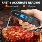 Description digital meat thermometer instant read meat thermometer for Cooking Kitchen Food Candy with Backlight and Magnet for Oil Deep Fry BBQ Grill Smoker Thermometer by 【SUPER FAST and ACCURATE】Takes a temperature in a little as 2-3 seconds, and is accurate to +/-1 degrees with a wide range of -58℉-572℉. No more waiting over a hot stove or grill for the temperature to settle. Find out the exact temperature of your food in a second! For maximum measurement accuracy a calibration function is provided. Perfect for indoor outdoor cooking, grilling, BBQ and so on. Easy to use: Kitchen thermometer with foldable probe design folds away easily and locks into base for portability; Magnetic back and hook allows for convenient storage 【WATERPROOF & PRACTICALITY】Every gap in the thermometer has a waterproof treatment, IP67 rated waterproof, the KULUNER meat thermometer can be washed under running water without fear! With a strong ABS plastic body, it can withstand accidental drops or other impact accidents. With a waterproof and strong break resistant body, the food thermometer is highly durable and resilient. Great for grilling outdoors. Super-fast: Instant reading thermometer with backlight features 5 inches food grade stainless steel probe gets temp readout within 3 seconds with high precision sensor Backlight display: Grilling thermometer features backlight LCD display to let you see clearly while cooking in the evening, indoors or outdoors
