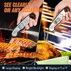 Meat thermometer is designed for all food lovers! It reads fast (2-4s) and accurate (±1°C/2°F). Made of premium ABS material and stainless steel, it’s strong and durable. Take this thermometer and start your home chef journey now! Product Features ✔ Fast & Accurate Reading ✔ Large Backlight Display ✔ IP67 Waterproof ✔ Premium ABS Material Shell ✔ Safe Stainless Steel Probe What’s In The Box 1×Meat Thermometer 1×User Guide 1×Food-Temp Chart 2×Button Battery (1 installed; 1 spare) 4×Hook & Loop Fasteners Ultra Fast & Accurate Reading: The meat thermometer’s probe head measures only 1.7mm in diameter, making it easy to introduce it into meats. Keeping it in food for 2-4 seconds, you’ll get the accurate temperature (±1°C/2°F). Whether to fry beef steaks, grill pork, deep fry fish/potatoes, or for an outdoor BBQ, this thermometer gives you accurate temp reference Designed for Easy Usage: Unfold the food thermometer and it starts to read immediately. If there’s no operation, it’ll auto-switch off after 10 minutes. The thermometer supports both Celsius (°C) and Fahrenheit (°F) display from -58°F to 572°F (-50°C to 300°C), enabling to read either frozen ice cube or broiling steak. It also can lock the temp through the “Hold” button, letting you see the temp closely A Large Screen at Your Reach: This food thermometer comes with a large backlight screen, enabling you to see the temp clearly whether in a poorly lighted kitchen or outdoors of too much light. The built-in magnet and large hanging hole make storing it a snap. What’s more, the ergonomic handle offers a comfortable grip, letting you enjoy every step of cooking IP67 Waterproof with Durability: With IP67 certification, the grill thermometer is super easy to clean. (NOTE: Please wipe it with a soapy cloth or rinse it to clean, and DO NOT soak it or put in a dishwasher.) The probe is made of 304 stainless steel, non-toxic and safe for contacting food. Coated with premium ABS material, the thermometer lasts long and works with great durability 100% Satisfying Service: Every product sent to you has gone through a series of quality inspection processes, please rest assured of this meat thermometer. If you have any questions before or after purchase, do not hesitate and contact us, we promise you a satisfying solution