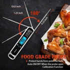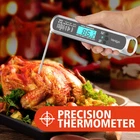 Fast Testing ✅ FAST & ACCURATE READINGS - Measure food or drink temperature in as little as 3 seconds with an accuracy of +/- 1 degree with the Meat Thermometer and it can easily switch between ℃ and ℉. Read temperature measurements more easily in low light with the help of the illuminated LCD display. ✅ WATERPROOF & DURABLE - The Meat Thermometer has a waterproof rating of IPX6, so you can rest assured that it will not be damaged by water. To wash it, simply clean it with a wet cloth or rinse it . Our thermometer features a strong, food grade stainless steel material that folds up for convenient storage. ✅ USER-FRIENDLY & COMPACT - To use, just open that the device is ready to go! The LCD display screen is easy and clear to read. The compact design allows you to store it easily and travel with. The thermometer features a magnetic back so you can attach it to a refrigerator or any metal surface, as well as a hanging hole for kitchen hooks or a lanyard. ✅ LOCK & CALIBRATION - The kitchen thermometer can lock the current temperature and keep it displayed once is removed from your food so that you no longer have to risk peering into a dangerously hot oven or grill. The calibration function allows you to always get the correct reading, making our thermometer last. ✅ VERSATILE THERMOMETER - The thermometer is designed for cooking steaks, chicken, poultry, beef, pork chops, roasted meat, soup and seafood, etc. It also helps to check the liquids temp cooked in the cold or hot conditions.The quality and convenience of our food thermometer makes it a great present for any BBQ enthusiast!