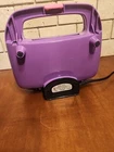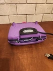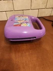 Make your breakfast a magical experience with this Disney PRINCESS Crown CASTLE Waffle MAKER. The waffle maker is designed in a unique and fun shape that will make your waffles look like a castle. With a power source of 120 V and a power of 760 W, this Belgian Waffle Maker can make two waffles at a time. The machine features an indicator light that shows when the waffle is ready and is easy to clean with its non-stick surface. The waffle maker is made of iron and is a novelty shape that children will love. This DP-2 model is colored in a vibrant purple and is manufactured in China.