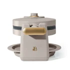Crush your brunch goals and serve the family light, fluffy and crispy on the outside Belgian waffles right at home with the Beautiful Rotating Belgian Waffle Maker. A powerful 100 watt heating system and easy-to-use rotating mechanism combine to cook five, evenly-cooked round 1”-thick restaurant-quality waffles in only 10 minutes. With seven adjustable control settings, you’re in control of cooking each waffle to just the right shade to please all your guests (or yourself!). The waffle plates feature a non-stick coating made without PFOA and PFOS for easy food release and clean up. Plus, its compact size (the handle rotates and folds in) and genius cord wrap makes storage simple. A ready indicator light and cool-touch handle round out the features of this must-have waffle maker. Available in Porcini Taupe Makes five 1” thick restaurant-style Belgian waffles in under 10 minutes Rotates for evely cooked waffles every time Seven settings cooks waffles to your preference Powerful 1000-watt heating system Non-stick coating made without PFOA & PFOS for easy food release and clean up Dishwasher-safe removable drip tray Handle rotates and folds for compact storage Long-lasting metal housing with matte premium Comes in Porcini Taupe Condition: new