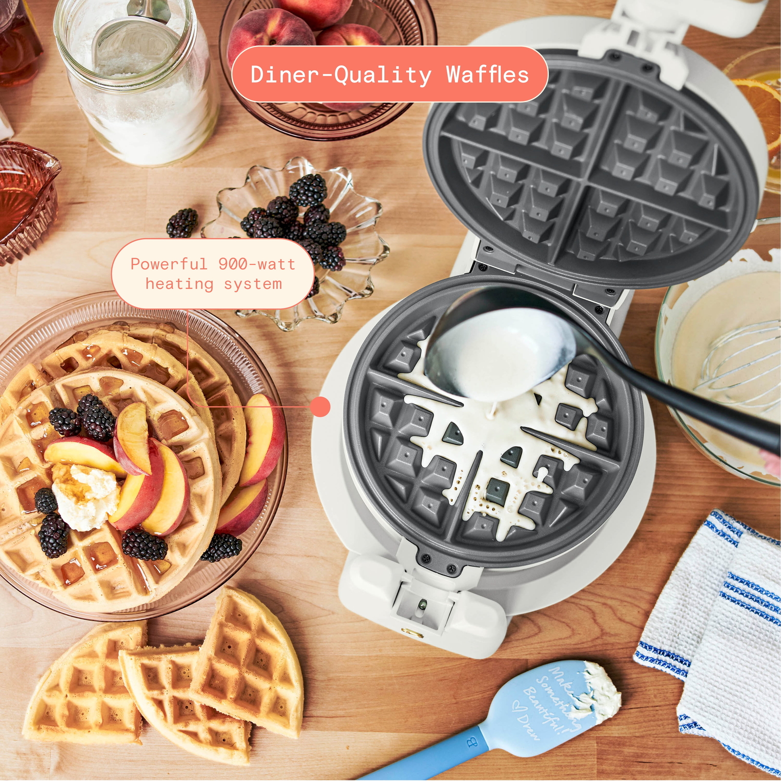 Crush your brunch goals and serve the family light, fluffy and crispy on the outside Belgian waffles right at home with the Beautiful Rotating Belgian Waffle Maker. A powerful 100 watt heating system and easy-to-use rotating mechanism combine to cook five, evenly-cooked round 1”-thick restaurant-quality waffles in only 10 minutes. With seven adjustable browning control settings, you’re in control of cooking each waffle to just the right shade to please all your guests (or yourself!). The waffle plates feature a non-stick coating made without PFOA and PFOS for easy food release and clean up. Plus, its compact size (the handle rotates and folds in) and genius cord wrap makes storage simple. A ready indicator light and cool-touch handle round out the features of this must-have waffle maker. Available in White Icing with signature gold accents. Condition: new. Makes five 1” thick restaurant-style Belgian waffles in under 10 minutes Rotates for evenly cooked waffles every time Seven browning settings cooks waffles to your preference Powerful 1000-watt heating system Non-stick coating made without PFOA & PFOS for easy food release and clean up Dishwasher-safe removable drip tray Handle rotates and folds for compact storage Long-lasting metal housing with matte premium finish Comes in White Icing Condition: new