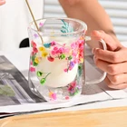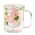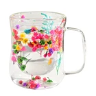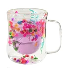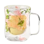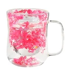 Dry Flowers Double Wall Glass Cup Glass Tea Cup Double Wall Insulated Coffee Mug