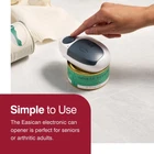 Simplify your kitchen tools and gadgets with the EasiCan Electronic Can Opener. This automatic can opener requires simple touches of a button to start and stop the can opener. This safety can opener lifts lids right off the cans. The can opener cuts through the cans from the sides, ensuring that only smooth edges remain. With this cordless can opener, you can open cans of all sizes, whether they're small, medium or large food cans. Simple to use, safe to handle and offering no shortage of options, the EasiCan Electronic Can Opener has earned its place in kitchens around the world. This arthritis-friendly can opener is perfect for seniors or arthritic adults. Give the gift of ease with this product. Product Details: Care Instructions: Hand clean with a damp cloth : 2 Years Dimensions: 1.97 x 5.12 x 2.56 inches Weight: 0.28 lb Since 1951, has been creating kitchen tools and gadgets to meet the growing need of consumers worldwide. Behind every kitchen tool is the "design to delight" principle. The belief is that all products should work simply and efficiently while making customers smile every time you use them. With over 70 years of experience in designing quality food preparation tools and gadgets, it is easy to see how has become an internationally respected brand favored by both everyday cooks and chefs. Effortless Can Opener Operation: This can opener is a kitchen gadget that simplifies your can-opening experience with its -touch start and stop functionality Hands-Free Kitchen Gadget: Enjoy a hands-free experience with this automatic can opener that opens any can effortlessly, ensuring a smooth edge can opener result that is safe to handle Space-Saving Can Tool: This battery-powered can opener is designed to fit neatly in a drawer, providing powerful can-opening capabilities without cluttering your kitchen space Battery-Powered Can Opener: Utilizing AA batteries (not included), this can opener offers cordless operation and a red LED indicator for operational status, simplifying your kitchen tasks Holiday Gifts: This holiday and Christmas season, give the gift of cooking experiences with our culinary gifts for the cooks who have everything; kitchen tools and gadgets are gifts for everyday cooks and chefs alike