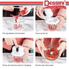 Electric 250ML Garlic Press Chopper Chili Onion Fruits Meat Mincer Blender Mixer Product Description: - DESSINI 250mL USB Rechargeable Food Chopper - Model: DSSC-L1 - Multi-functional USB food processor can be used as chopper, mixer, blender, cutter, shredder, mincer or grinder. - Powerful 100% copper core motor for long reliable usage - Ideal for grinding any kind of ingredients, such as spices, nuts and onion - It can also perfectly for cutting meat, fruit, vegetables, salad and so on. - It makes chopping done in less than 1 minute, very relaxed and easy compare to chopping board - 3-point 304 stainless steel sharp blades make cutting smoothly - Detachable bowl, blade and lid for easy cleaning. - Durable container can be used for refrigerating chopped foods. - It will make sure ingredients stay safe and hygienic. - Material: transparent plastic container; food grade ABS cover lid; 3-point stainless steel blade - For added peace of mind, all parts in contact with food are BPA free. - Capacity: 250mL Packaging Includes: - 1 x DESSINI food chopper - 1 x 3-point stainless steel blade - 1 x USB cable - 1 x Instruction manual (English version)