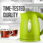 Boils Water in Flash – This electric kettle operates on 1100W (120V) and boils a full 1.7L of water in minutes! It is 50% more efficient than traditional stovetop kettles in reducing your daily electricity use..Product Care Instructions : Hand Wash Cleanest Drinking Water – This fast-heating boiler is BPA-free! You’ll be sure that what you’ll get is a clean drinking water that’s safe for you and your kids. Fire Safety Feature – This one is equipped with auto shut-off feature and boil-dry protection technology. It shuts off on its own when the kettle has reached its boiling temperature and switches off the heating element when there is no water in the kettle. Durability with Style – The Ovente kettles are famous for their durability and style. Not only does it look great with its trendy colors, it is designed to last long too! It has a stainless steel concealed heating element that extends your kettle’s life, compared with non-concealed ones that deteriorate faster. US-based Customer Service lets you buy with confidence. Ovente warranties that the product shall be free from defects in material and workmanship under normal use and conditions, for 2 years from the original purchase date. Purifies Water to the Last DropDid you know that most bottled waters sold in the supermarkets are reclaimed and reprocessed tap water? They have been heavily filtered to change the taste, and they are packaged in bottles that might contain BPA, posing a danger of plastic chemicals leaching into the water. Not to mention they are sold at prices that’s 3000 times higher than tap water! That’s a hefty sum of money for something that’s not too far from the water you get from your faucet.With this Ovente’s KP72 Electric Kettle Series, you’d be able to purify your drinking water to its safest state. It runs on 1100W (120V) that boils water at 160 . Uncomplicated Operation and CleanupThis kettle is crafted with a secure locking lid that flips back with just one push of a button! This button stays cool along with its cool touch handle. What’s more, you can remove its spout filter for an out-and-out clean! Simply mix 3 tablespoons of vinegar or lemon with water then allow it to boil. Let it sit for a minimum of five more hours and dry afterwards. Storing this 1.7L kettle is easy as well: The 30-inch cord wraps neatly to its base.Key Features1.7L1100WBPA-freeStainless Steel InteriorConcealed Heating ElementEasy-to-Clean Removable FilterLED indicator lightAutomatic shut-off and boil-dry protectionStay-cool handle and buttonMeasurements: 8.5 x 6.7 x 9.4 inNOTE: The electric kettle might reach the boiling point faster at higher altitudes due to the fluctuation of temperature. Hence, the kettle might not shut off on its own.CAUTION: KETTLE BODY MIGHT GET EXTREMELY HOT DURING OPERATION. PLEASE BE EXTRA CAREFUL AND USE THE COOL-TOUCH HANDLE TO AVOID BURNS.