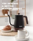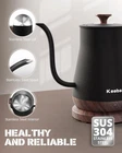 100% STAINLESS STEEL RELIABLE - Made from High-quality stainless steel and Wood-like Grain Finish Handle, this electric kettles for boiling water is durable and built to last, provide you with pure water taste making it a great investment for coffee enthusiasts and tea lovers alike. *A white silicone lock inside the kettle,that made of food-grade silicone, to detect the water temperature. When the water boils, the silicone senses enough water vapor to trigger the switch to auto-shut off, please rest assured to use. 1000W FAST BOILING - electric kettle comes with a fast and powerful heating element, you can be sure that your water will be ready in just minutes, this top-quality electric tea kettle is designed to provide you with hot water quickly and efficiently, making it ideal for brewing the perfect cup of coffee or tea. MULTIFUNCTIONAL & SAFE FEATURES - The electric water kettle is perfect for a variety of uses, including brewing coffee, tea, or even hot cocoa. Moreover, the automatic shut off feature ensures that the kettle turns off as soon as the water has boiled, providing added safety and peace of mind. 0.8MM PRECISE POURING - The gooseneck kettle design allows for precise water flow, making it easy to pour just the right amount of hot water over your coffee grounds or tea leaves. With its sleek and stylish design, this small electric kettle is sure to complement any kitchen decor.Size:8.38"L x 5.12"W x 10.53"H. Color Matte Black Special Feature High-quality Stainless Steel, Wood-like Grain Finish Handle, Boil Dry Protection, Rapid Boil Package Information Kettle Finish Type Brushed Product Dimensions 8.38"L x 5.12"W x 10.53"H Included Components Power Base Material Feature Wood-like Grain Finish Handle Product Care Instructions Hand Wash Recommended Uses For Product Boiling Country/Region of Origin China